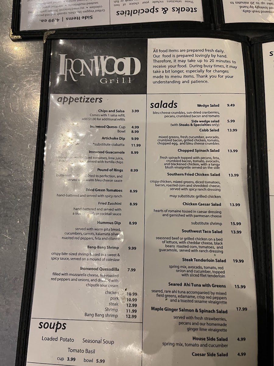 Ironwood Grill is more than a meal; it’s a destination for food lovers. Stop by to indulge in a memorable dining experience that’s sure to leave you wanting more.
